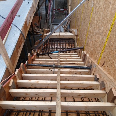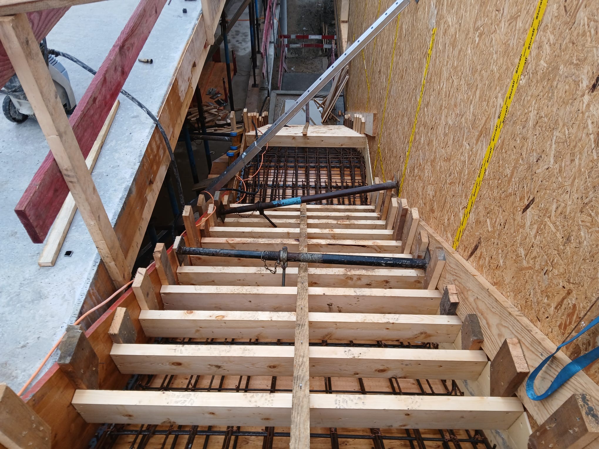Béton apparent type 4, radier, murs, escaliers, piliers hauteur 5.00 ml.